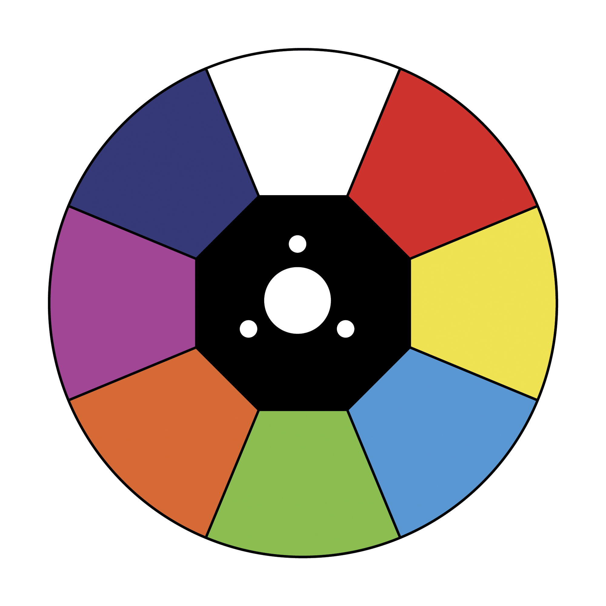 - 7 Farben + weiß & 6 Gobos + offen
